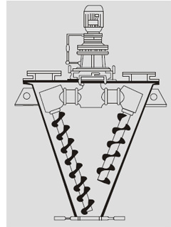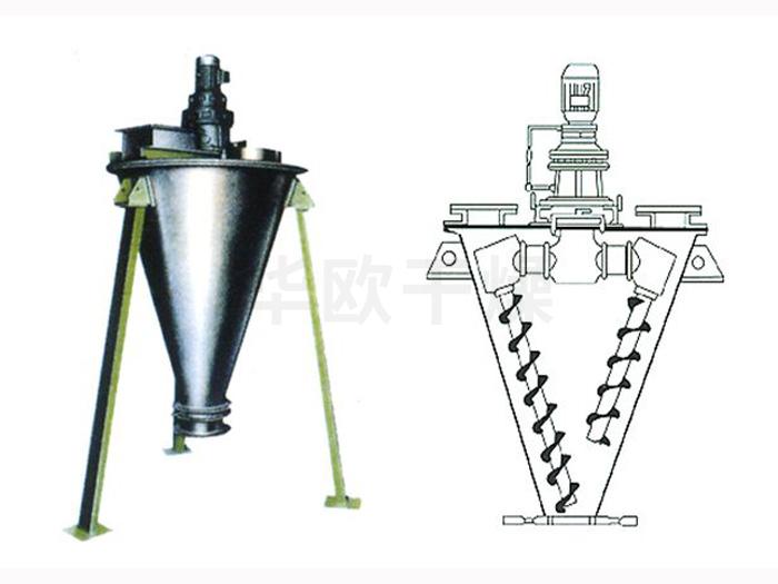 1、螺旋沿壁公轉,使物料沿錐壁作圓周活動;
