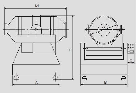 二維混料機首要由轉筒、擺動架、基架三大局部組成。轉筒裝在擺動架上,由四個滾輪支持并由兩個擋輪對其停止軸向定位,在四個支持滾輪中,此中兩個傳動輪由動彈能源體系拖動使轉筒產生動彈,擺動架由一組曲柄擺桿機構來驅動,曲柄擺桿機構裝在機架上,擺動架由軸承組件支持在機架上。