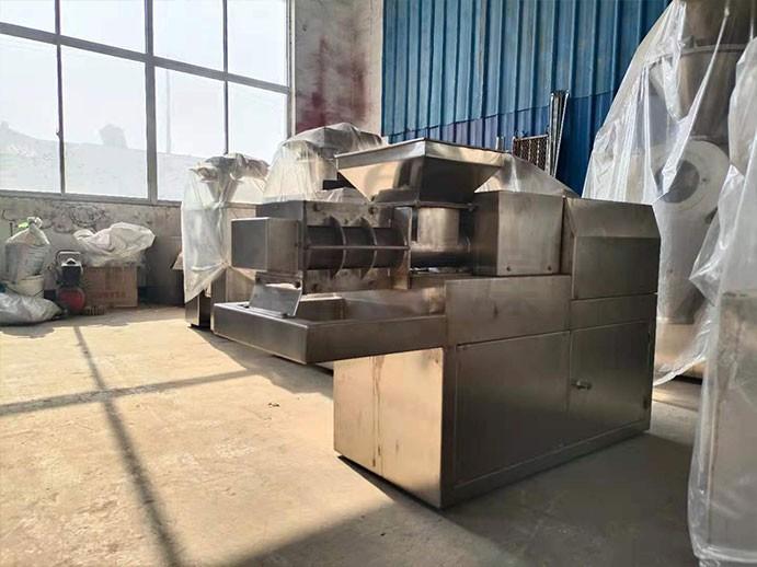 在固體粉料與液體共存并以固相為主的分離體中,操縱分離體的自粘性(或外加粘結劑),經由進程強迫體例(如擠壓、重力、向心力、機器力、氣流沖力等)使固體粉料根基微粒彼此粘接、增大。并構成必然形狀和粒度平均,集合的顆粒群。濕法造粒成套裝配首要由夾雜(捏和)、造粒、枯燥及其幫助體系裝備構成。粉料經夾雜(捏和)后,進入造粒機構成所需粒度的含濕產物,經枯燥獲得顆粒狀制品,從而實現造粒的目標。